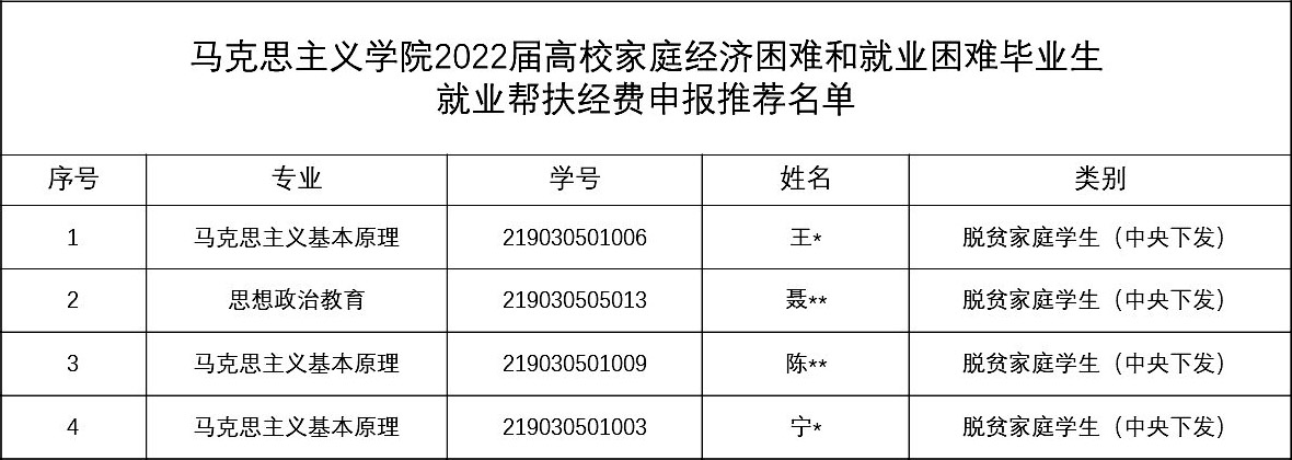 根据《四川省教育厅关于做好2022年普通高校家庭经济困难和就业困难毕业生就业帮扶经费申报工作的通知》、《关于做好高校惠民惠农财政补贴资金社会保障卡“一卡通”管理有关工作的通知》(川财教〔2021〕16号)以及《关于进一步加强惠民惠农财政补贴资金“一卡通”管理的通知》(川财办〔2021〕6号)的文件精神和有关要求,按照西南财经大学2022届家庭经济困难和就业困难毕业生就业帮扶经费申报工作的安排,在符合条件同学自愿申报的基础上,按照“适当兼顾、统筹平衡”的原则,allwincity万象城官方网站拟推荐以下四位同学申报2022届高校家庭经济困难和就业困难毕业生帮扶经费,帮扶标准统一为600元/人。